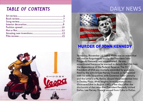 Yesterday, November 22, 1963, there was an event that will not be forgotten so easily: the President John Fitzgerald Kennedy was assassinated. He was assassinated because he wanted to detach the USA from the dependence of the Federal Reserve. The 35° President of USA was mortally wounded by gunshots, fired by the activist Lee Harvey Oswald, as he traveled with his wife Jacqueline, with Governor John Connally and the latter's wife, Nellie, aboard the presidential limo in Dealey Plaza. After lenghty investigations it was discovered that in August 1963, a few days after the disclosure of the news that President Kennedy visited Dallas, Lee Harvey Oswald moved from Cuba to Dallas.