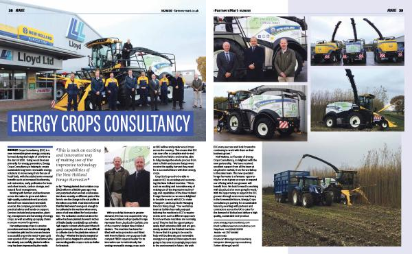 Neil Watkins , co-founder of Energy Crops Consultancy , is delighted with the new partnership . “ We have received excellent support from all the team at Lloyd Ltd in Carlisle , from the workshop to the sales team . This new specialist forage harvester is a fantastic opportunity for us as it gives us scope to expand our offering which our growers will benefit from . We look forward to working with Lloyd Ltd a lot more going forward .” With the opportunity to support the ECC growers through even more machinery in the foreseeable future , Energy Crops Consultancy is pushing for a sustainable future by working with partners and contractors across the UK to cater for the demand of biofuel and deliver a high quality , sustainable end-product .
