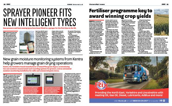 THE Continental VF tyres have been fitted to a SAM Horizon 4000 self-propelled sprayer . “ This is the first time the new VF tyres with pressure sensors have been fitted to a sprayer in the UK and we hope that other sprayer operators will want to introduce this technology to help reduce soil compaction ,” says Continental agricultural tyre specialist Richard Hutchins .