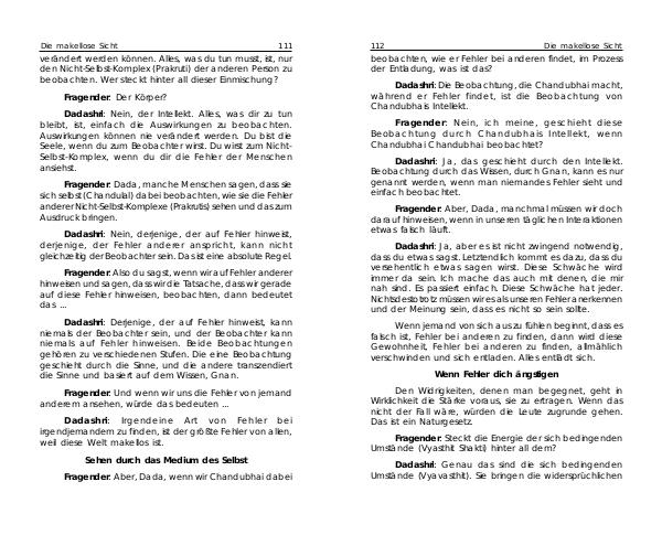 Dadashri: Derjenige, der auf Fehler hinweist, kann niemals der Beobachter sein, und der Beobachter kann niemals auf Fehler hinweisen. Beide Beobachtungen gehören zu verschiedenen Stufen. Die eine Beobachtung geschieht durch die Sinne, und die andere transzendiert die Sinne und basiert auf dem Wissen, Gnan.