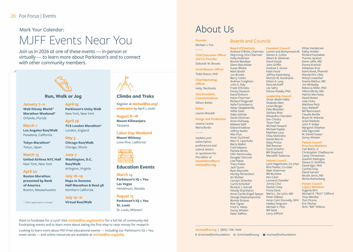 Join us in 2026 at one of these events— in-person or virtually— to learn more about Parkinson’ s and to connect with other community members.