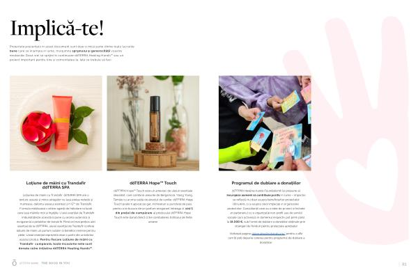 Proiectele prezentate în acest document sunt doar o mică parte dintre toate lucrurile bune care se întâmplă în lume , mulțumită sprijinului și generozității voastre neobosite . Dacă vrei să sprijini în continuare dōTERRA Healing Hands™ sau un proiect important pentru tine și comunitatea ta , iată ce trebuie să faci :