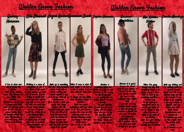 Both my clothing and my makeup gives me a way to express myself and who I am. Makeup helps me the most, because I can change it up everyday. I get my makeup at Sephora, and my clothes come from thrift stores, hand-me-downs and Forever 21. Do whatever you want, if other people don’ t like it then don’ t listen. Be as creative as you want. |