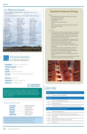 September – Tiŋŋivik / Caribou lose velvet Amiġaiqsivik / Time birds fly away 4 Labor Day , NANA Offices Closed 22 Autumnal Equinox 30 National Day of Remembrance of U . S . Indian Boarding Schools