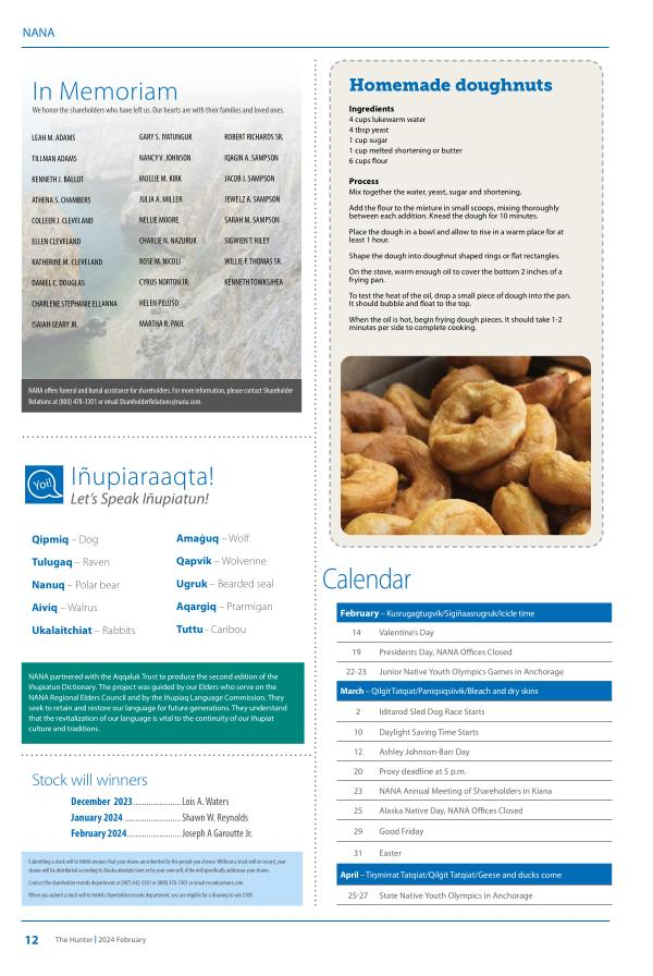 March – Qilgit Tatqiat / Paniqsiqsiivik / Bleach and dry skins 2 Iditarod Sled Dog Race Starts 10 Daylight Saving Time Starts 12 Ashley Johnson-Barr Day