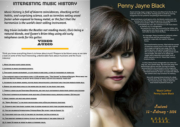 Award-winning singer-songwriter Penny Jane Black from the UK, first made her mark as a 'Music Row' charting artist in 2018/19, earning recognition for her powerful storytelling & Americana roots.