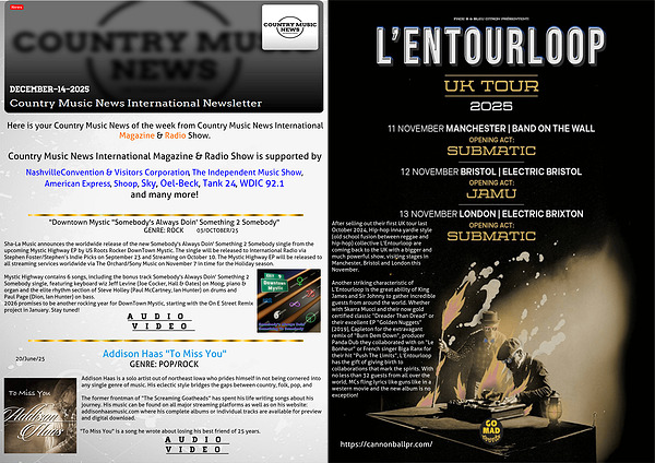 Here is your Country Music News of the week from Country Music News International Magazine & Radio Show.