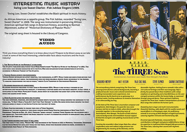 At the helm of The Three Seas is Australian composer and saxophonist, Matt Keegan. His quest for new sonic horizons led him to India in 2009, where fate brought the ensemble together in the enchanting town of Santiniketan, West Bengal. The fusion of their distinct cultural backgrounds and immediate musical rapport birthed the energetic and uplifting musical fusion of The Three Seas.
