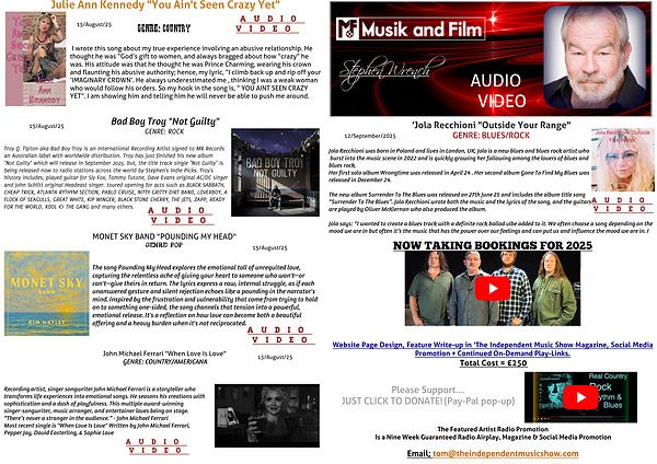 Website Page Design, Feature Write-up in 'The Independent Music Show Magazine, Social Media Promotion + Continued On-Demand Play-Links.
