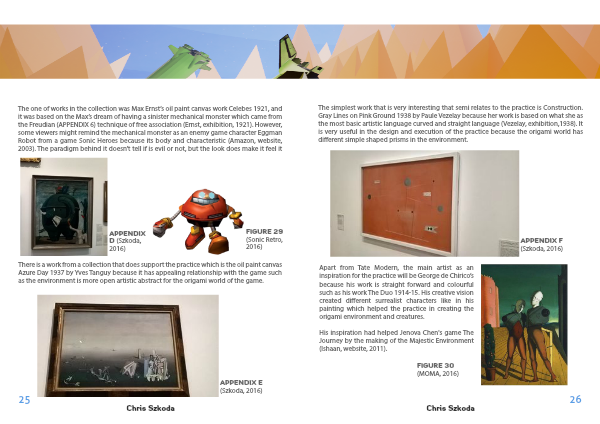 Apart from Tate Modern, the main artist as an inspiration for the practice will be George de Chirico’s because his work is straight forward and colourful such as his work The Duo 1914-15. His creative vision created different surrealist characters like in his painting which helped the practice in creating the origami environment and creatures.