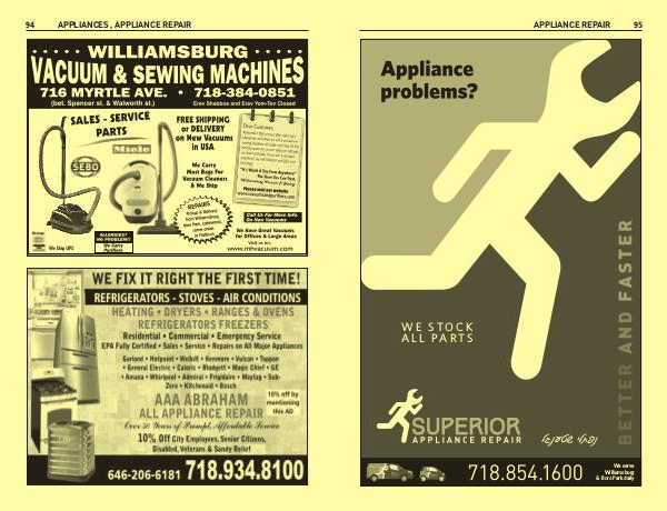 APPLIANCE REPAIR 95 WE STOCK A L L PA R T S We serve Williamsburg & Boro Park daily