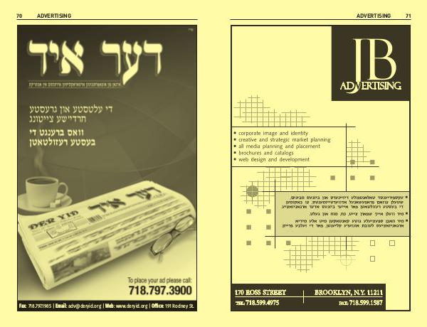 70 ADVERTISING Fax : 718.797.1985 | Email : adv@deryid.org | Web : www.deryid.org | Office : 191 Rodney St.