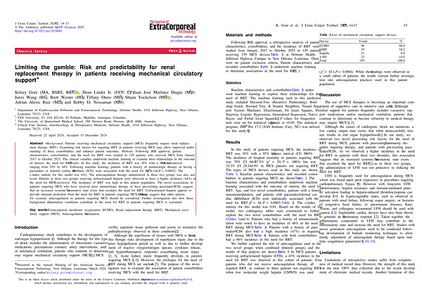 1 Department of Cardiovascular Perfusion and Extracorporeal Technology , Ochsner Health , 1514 Jefferson Highway , New Orleans , Louisiana 70121 , USA 2 CES University , Cl 10A # 22-04 , El Poblado , Medellin , Antioquia , Columbia 3 The University of Queensland Medical School , 288 Herston Road , Herston , QLD 4006 , Australia 4 Critical Care Section , Anesthesiology & Perioperative Medicine , Ochsner Health , 1514 Jefferson Highway , New Orleans ,