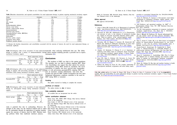 Table 3 . Contingency table of the association of renal replacement therapy in patients with a history of immunomodulation during mechanical circulatory support .