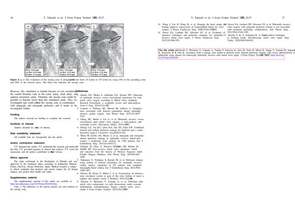 Cite this article as : Takeichi T , Morimoto Y , Yamada A , Tanaka T , Fujiwara K , Sato M , Toma R , Mitsui K , Sugita T , Yamada H , Nakagaki K , Kuriyama H & Gan K . Assistance from a mixing zone model to perform aortic femoral perfusion strategy with severe atherosclerotic and artheromic aortic disease for endoscopic minimally invasive redo mitral valve repair . J Extra Corpor Technol 2025 , 57 , 32 – 37 . https :// doi . org / 10.1051 / ject / 2024036 .