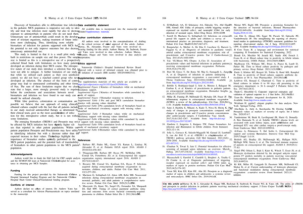 Cite this article as: Murray R, Bi J, Alexandar R, Haque MR, Beckman B, Seabrook R, Frazier WJ, & Yates AR. The utility of sTREM-1 and presepsin to predict infection in pediatric patients receiving mechanical circulatory support. J Extra Corpor Technol 2025, 57, 96 – 104. https:// doi. org / 10.1051 / ject / 2025008.