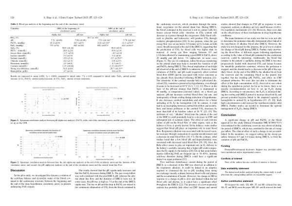 The main limitation of our study was that we were not able to determine the potential clinically detrimental effect linked to the reperfusion of alkaline blood after DHCA. However, the study was not designed for this purpose, the goal was to explore the change of blood pH during DHCA. Further study monitoring the blood flow of different organs following reperfusion, according to the value of blood pH contained in the cardiotomy reservoir, could be interesting. Additionally, the blood that remains in the patient’ s capillaries during the DHCA becomes progressively loaded with dissolved CO 2 and lactate because the metabolic production continues, whereas the perfusion is stopped, and this should lead to a decrease in the pH of the capillary blood. At the end of the DHCA, the alkaline blood from the reservoir and the remaining blood in the patient mix together, but the resulting pH, PaCO 2, and effect on CBF remained unknown. We were also not able to determine the effect of the high concentration of O 2 observed in our cohort during the reperfusion period. As far as we know, there is no specific recommendation on how to set up F m O 2 during DHCA. According to our practices, the F m O 2 is increased during the cooling and DHCA period to increase dissolved O 2 and prevent potential hypoxia linked to the impaired capacity of hemoglobin to unload O 2 in hypothermia [ 15, 25, 26 ]. Such high concentrations could increase the reperfusion injuries after DHCA. Further studies are needed to determine the optimal management of F m O 2 during DHCA.