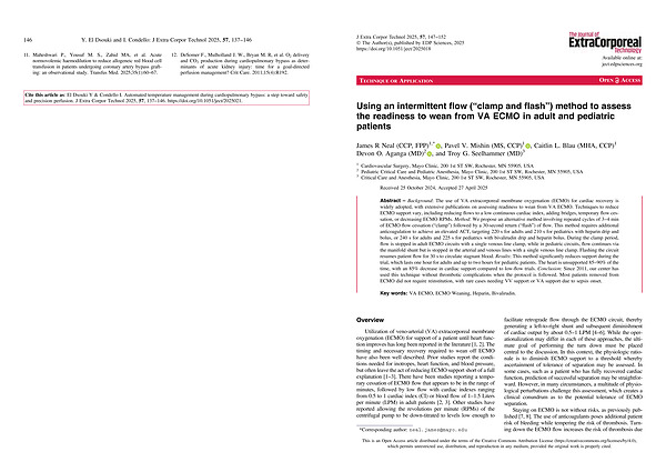 146 Y. El Dsouki and I. Condello: J Extra Corpor Technol 2025, 57, 137--146