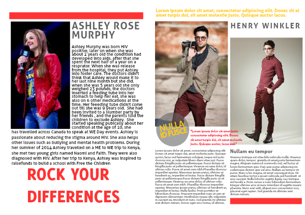 has travelled across Canada to speak at WE Day events. Ashley is passionate about reducing the stigma around HIV. She also helps other issues such as bullying and mental health problems. During her summer of 2014 Ashley travelled on a ME to WE trip to Kenya, she met two young girls named Naomi and Faith. They were also diagnosed with HIV. After her trip to Kenya, Ashley was inspired to raisefunds to build a school with Free the Children