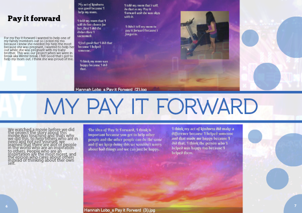 For my Pay it forward i wanted to help one of my family members out so i pcied my mo because i knew she needed my help the most because she was pregnant, I wanted to help her out while she was pregnant with my baby brother. This was our project when we were in break aka Winter break. I felt Good that i got to help my mom out. I think she was proud of me.