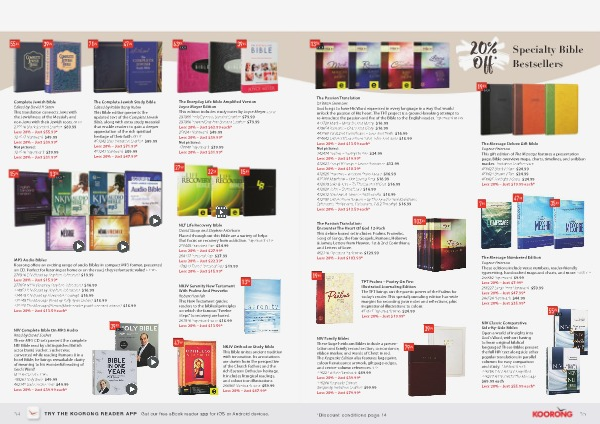 MP3 Audio Bibles Koorong offers an exciting range of audio Bibles in compact MP3 format, presented on CD. Perfect for listening at home or on the road, they’ re fantastic value! AUD WM 270938 ESV( Read by Stephen Johnston) $ 19.99 Less 20 % – Just $ 15.99 * 277650 NKJV( Read by Stephen Johnston) $ 16.99 334951 KJV( Read by Stephen Johnston) $ 16.99 314439 KJV( read by Alexander Scourby) $ 16.99 315349 The Message( Read by Kelly Ryan Dolan) $ 16.99 315350 The Message // Remix( Multi-reader youth oriented edition) $ 16.99 Less 20 % – Just $ 13.59 each *