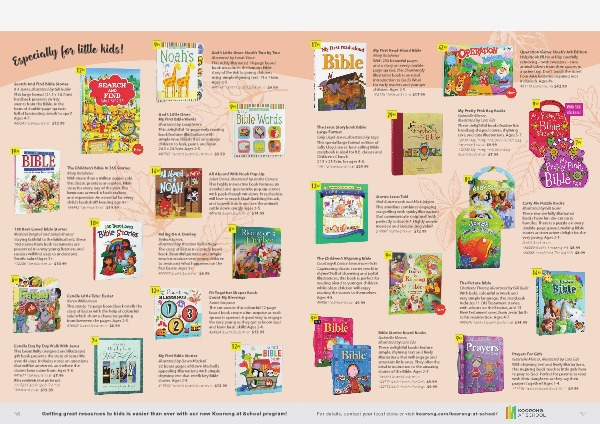These delightful books feature fun handbag-shaped covers, rhyming text, and cute illustrations. Ages 3-7. 320103 My Pretty Pink Bible Sticker Bag Paperback CGA AC $ 9.99 312740 My Pretty Pink Bible Bag Board Book RTM GE $ 7.99