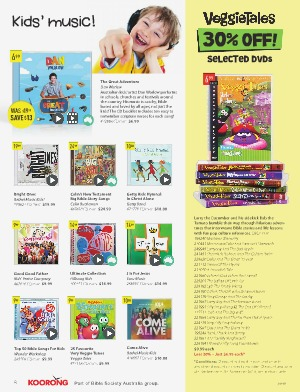 Larry the Cucumber and his sidekick Bob the Tomato bumble their way through hilarious adventures that interweave Bible stories and life lessons with fun pop culture references. DVD DCH GE 196240 Madame Blueberry 230441 Minnesota Cuke And Samson’ s Hairbrush 249946 Larryboy And The Bad Apple 241461 Sheerluck Holmes And The Golden Ruler 226820 Duke And The Great Pie War 221312 Sumo Of The Opera 213050 A Snoodle’ s Tale 221980 Where’ s God When I’ m Scared? 226201 The Ballad Of Little Joe 226192 Lyle The Kindly Viking 226190 Esther, The Girl Who Became Queen 226179 King George And The Ducky 221987 Larry Boy And The Rumour Weed 221991 Silly Sing-Along # 2 The End Of Silliness? 335513 Josh And The Big Wall 221986 Larry Boy And The Fib From Outer Space 224376 Very Silly Sing-Aalong 221985 Dave And The Giant Pickle 196248 Rack, Shack And Benny 221983 Are You My Neighbour? 226194 Ultimate Silly Song Countdown $ 9.99 each Less 30 % – Just $ 6.99 each *