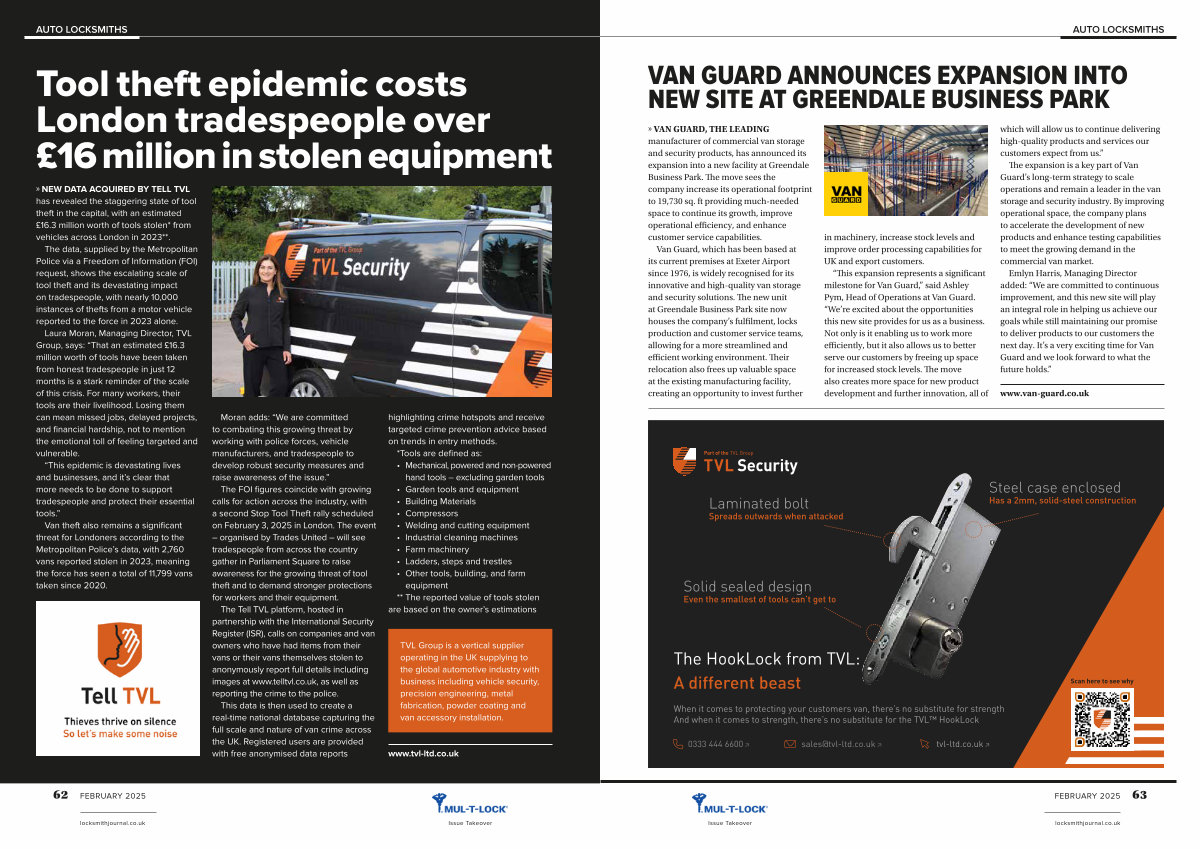 Laura Moran, Managing Director, TVL Group, says:“ That an estimated £ 16.3 million worth of tools have been taken from honest tradespeople in just 12 months is a stark reminder of the scale of this crisis. For many workers, their tools are their livelihood. Losing them can mean missed jobs, delayed projects, and financial hardship, not to mention the emotional toll of feeling targeted and vulnerable.