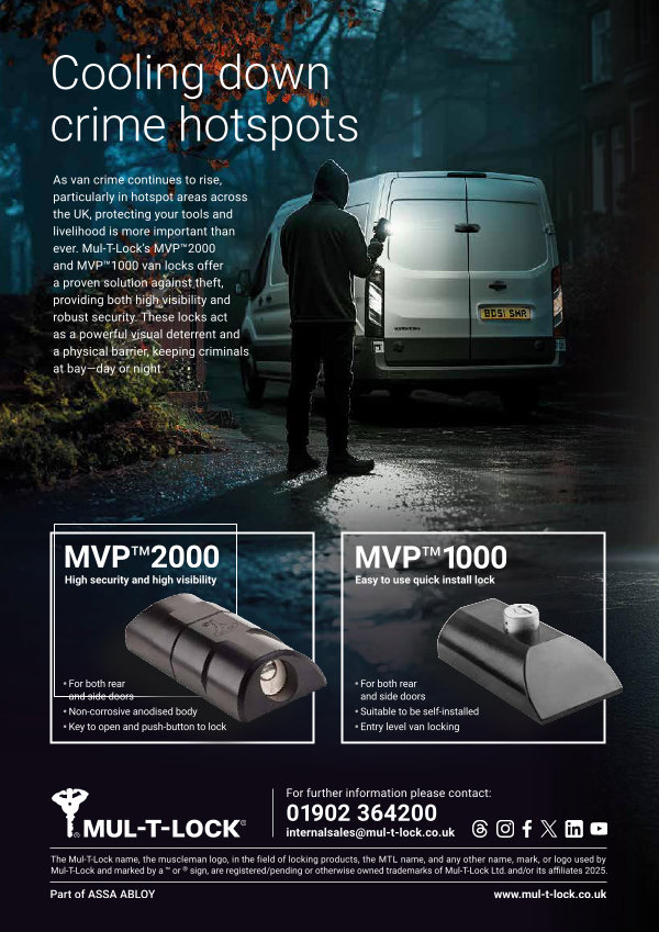 As van crime continues to rise, particularly in hotspot areas across the UK, protecting your tools and livelihood is more important than ever. Mul-T-Lock’ s MVP™2000 and MVP™1000 van locks offer a proven solution against theft, providing both high visibility and robust security. These locks act as a powerful visual deterrent and a physical barrier, keeping criminals at bay— day or night.