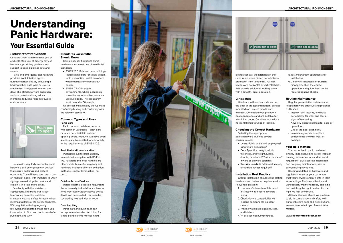 » LOUISE FROST FROM DOOR Controls Direct is here to take you on a whistle-stop tour of emergency exit hardware, providing guidance and support to keep buildings safe and secure.