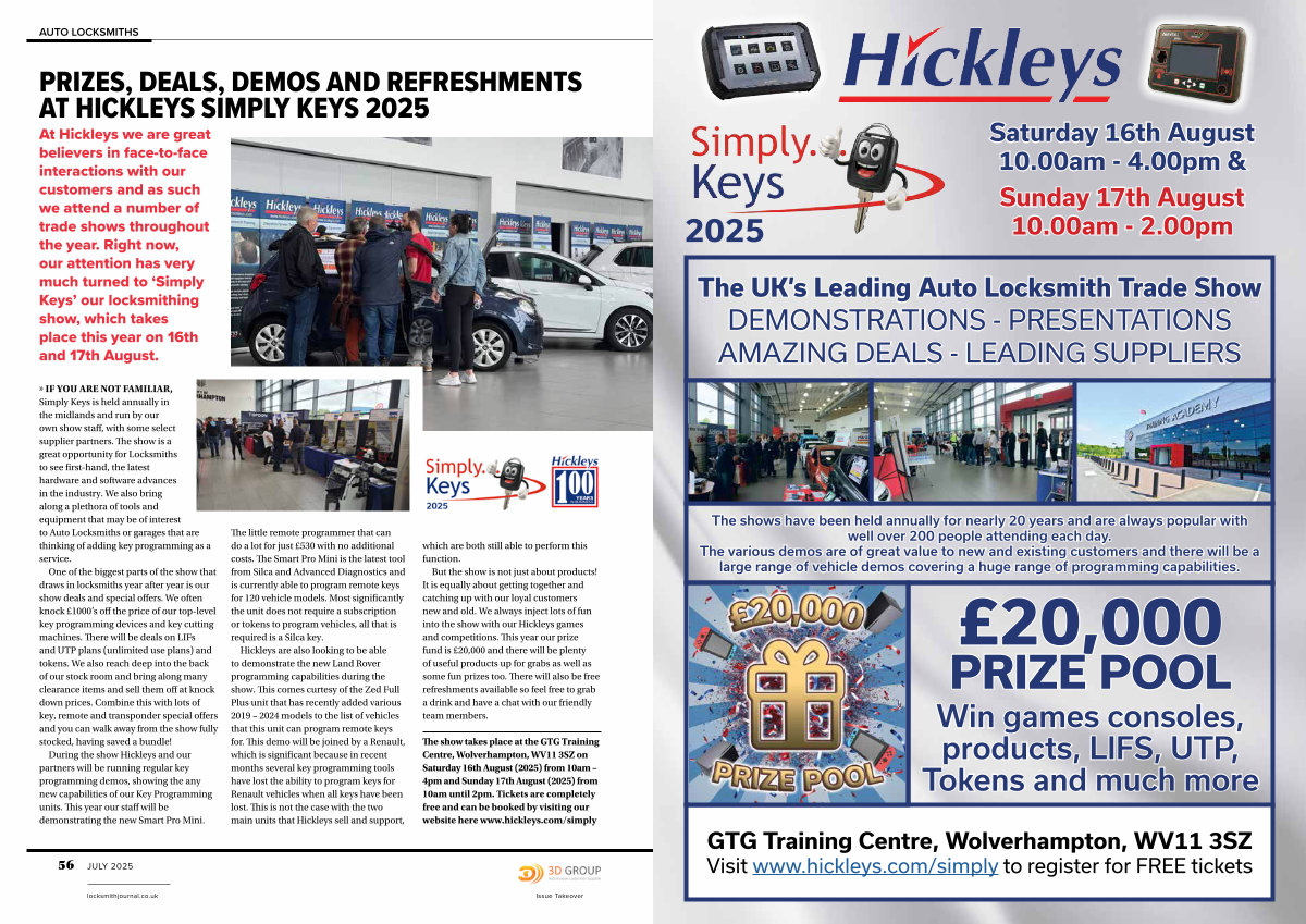 » IF YOU ARE NOT FAMILIAR, Simply Keys is held annually in the midlands and run by our own show staff, with some select supplier partners. The show is a great opportunity for Locksmiths to see first-hand, the latest hardware and software advances in the industry. We also bring along a plethora of tools and equipment that may be of interest to Auto Locksmiths or garages that are thinking of adding key programming as a service.