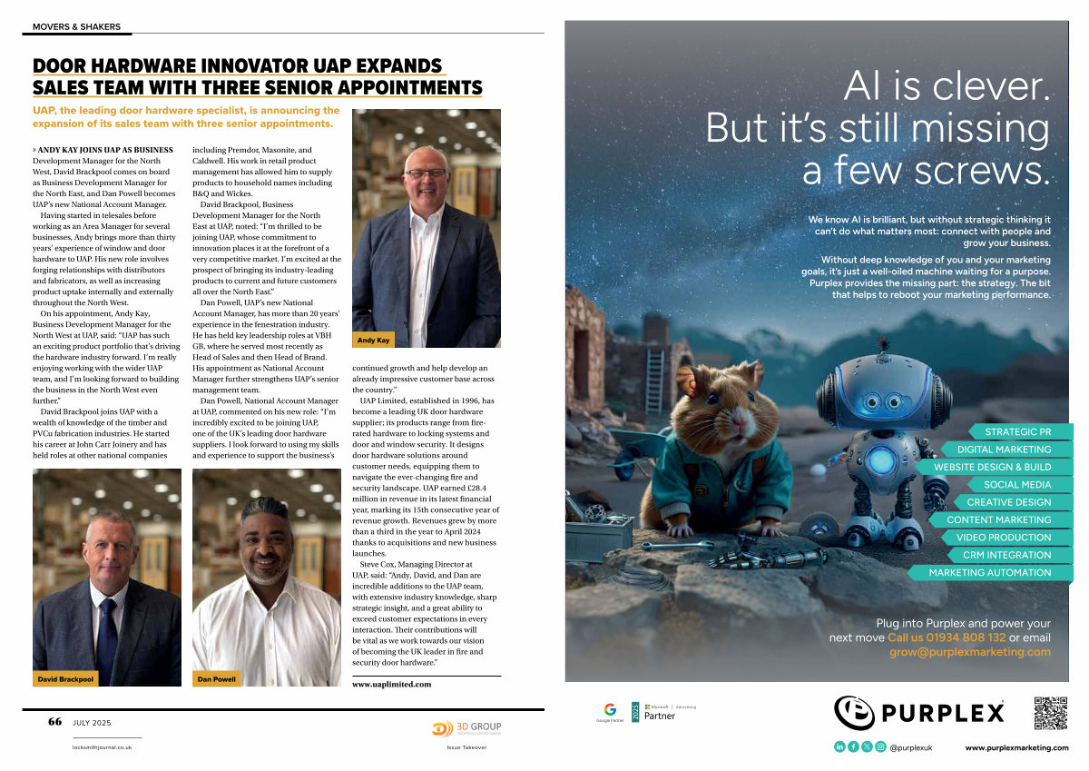 Steve Cox, Managing Director at UAP, said:“ Andy, David, and Dan are incredible additions to the UAP team, with extensive industry knowledge, sharp strategic insight, and a great ability to exceed customer expectations in every interaction. Their contributions will be vital as we work towards our vision of becoming the UK leader in fire and security door hardware.”