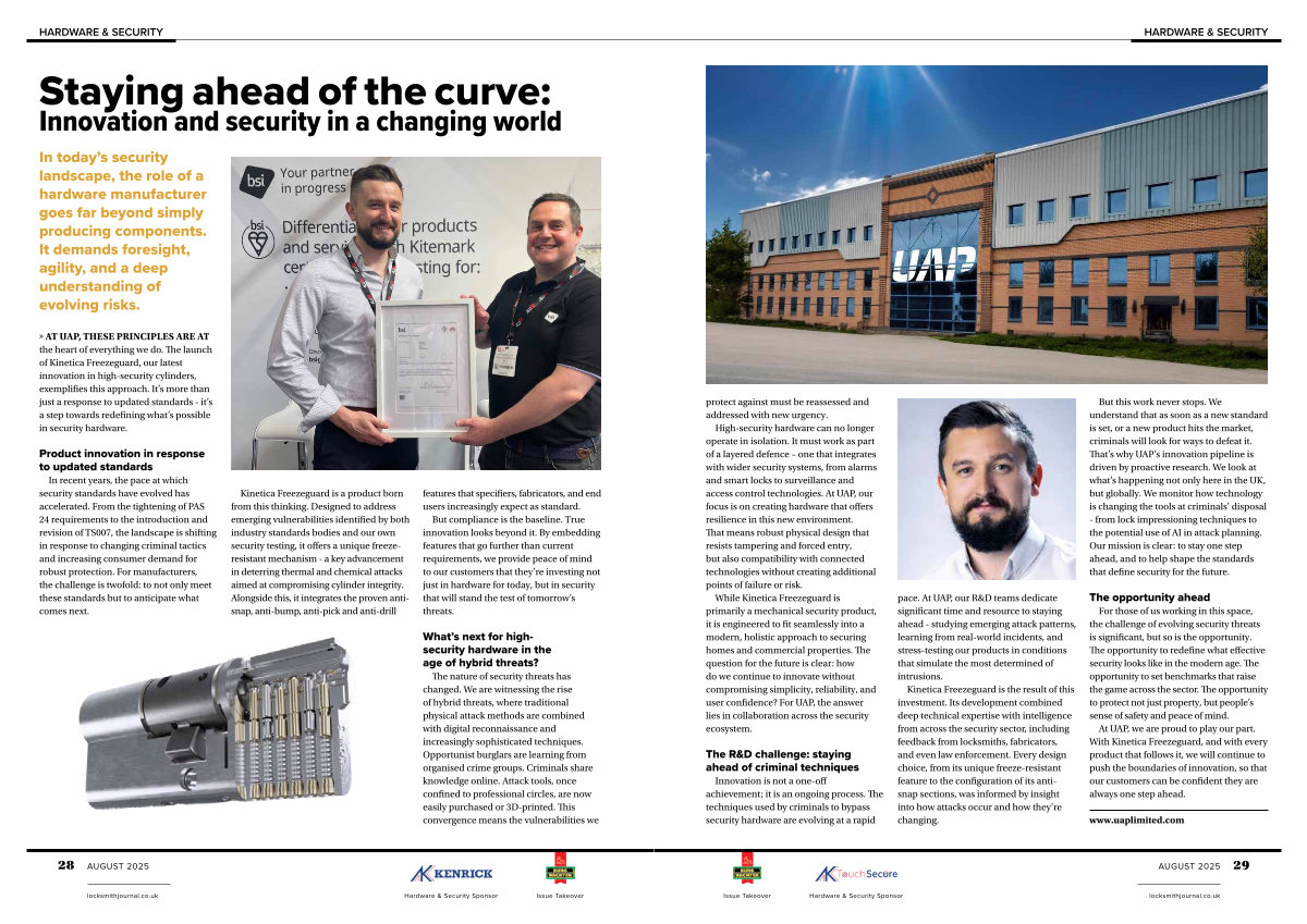 But this work never stops. We understand that as soon as a new standard is set, or a new product hits the market, criminals will look for ways to defeat it. That’ s why UAP’ s innovation pipeline is driven by proactive research. We look at what’ s happening not only here in the UK, but globally. We monitor how technology is changing the tools at criminals’ disposal- from lock impressioning techniques to the potential use of AI in attack planning. Our mission is clear: to stay one step ahead, and to help shape the standards that define security for the future.
