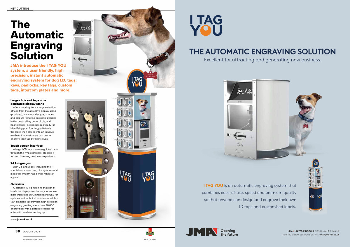 JMA introduce the I TAG YOU system, a user friendly, high precision, instant automatic engraving system for dog I. D. tags, keys, padlocks, key tags, custom tags, intercom plates and more.