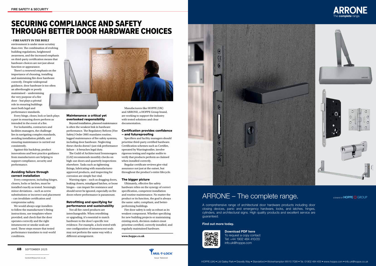 Manufacturers like HOPPE( UK) and ARRONE, a HOPPE Group brand, are working to support the industry with tested solutions and clear documentation.