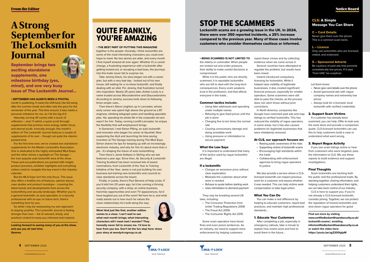 While it is the public who are directly scammed, it is reputable locksmiths who are left to deal with the long-term consequences. Every scam weakens trust in the profession, and that affects everyone in the trade …