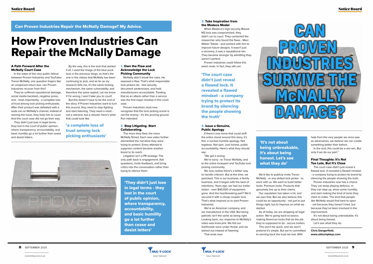 Proven Industries now has a choice. They can keep playing defence, or they can step up, show some humility, and start making the kind of locks they claim to make. The kind that people like McNally would find hard to open- not because they haven’ t tried, but because they’ ve been involved in the improvement.