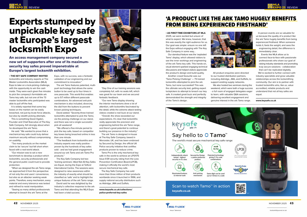 “ Our new Tamo display showing the interior mechanisms drew a lot of attention, with locksmiths fascinated by the detail, while the extreme attack testing videos created a real buzz at our stand.