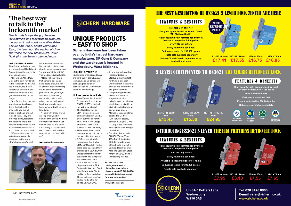 High security lock recommended by most insurance companies & the police |