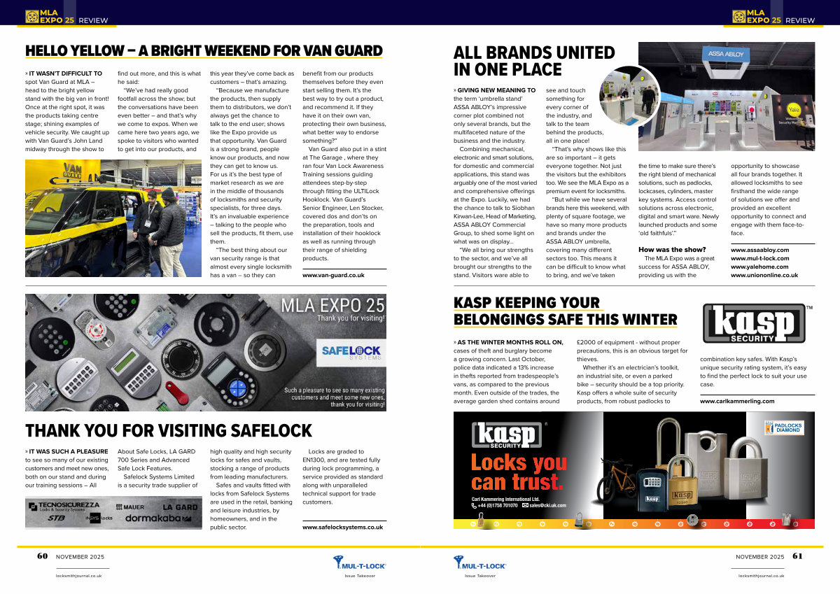 opportunity to showcase all four brands together. It allowed locksmiths to see firsthand the wide range of solutions we offer and provided an excellent opportunity to connect and engage with them face-toface.
