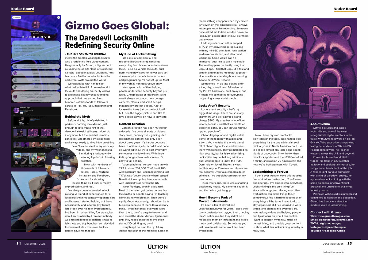 » THE UK LOCKSMITH JOURNAL meets the flip-flop-wearing locksmith who’ s redefining field video content. He goes only by Gizmo, a high-school nickname he admits“ kind of sucks, but it stuck.” Based in Slidell, Louisiana, he’ s become a familiar face for locksmiths and enthusiasts around the world.