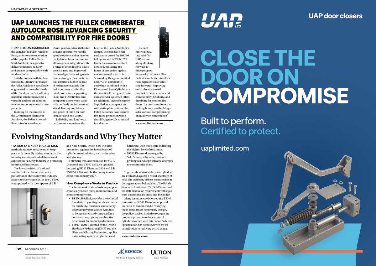 » AS NEW CYLINDER LOCK ATTACK methods emerge, security must keep pace with them. By raising standards, the industry can stay ahead of threats and support the security industry in protecting homes and businesses.