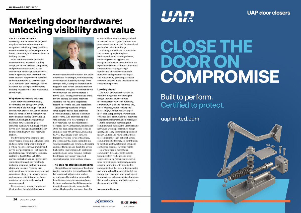 Door hardware is more than a commodity; it is a vital contributor to building safety, resilience and user experience. To be recognised as such, it must be positioned strategically, pairing ongoing innovation with benefits-led communication that clearly demonstrates real-world value. Done well, this shift can elevate door hardware from afterthought to strategic asset, helping deliver buildings that are safer, smarter and better suited to the demands of 2026.