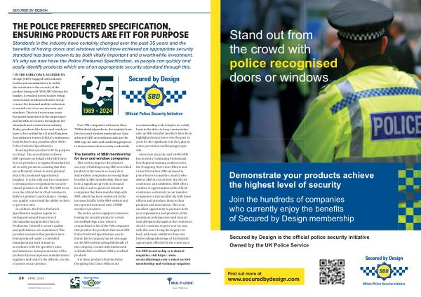 » IN THE EARLY DAYS , SECURED BY Design ( SBD ) engaged with industry bodies and manufacturers to tackle the variations in the security of the product being sold . With SBD driving the market , it resulted in test houses being created and certification bodies set up to meet the demand and the reduction in overall cost of secure doorsets and windows . This work over many years has raised awareness of the importance and benefits of security throughout the standards and construction industry . Today , products like doors and windows have to be certified by a United Kingdom Accreditation Service ( UKAS ) certification body before being considered for SBD ’ s Police Preferred Specification .