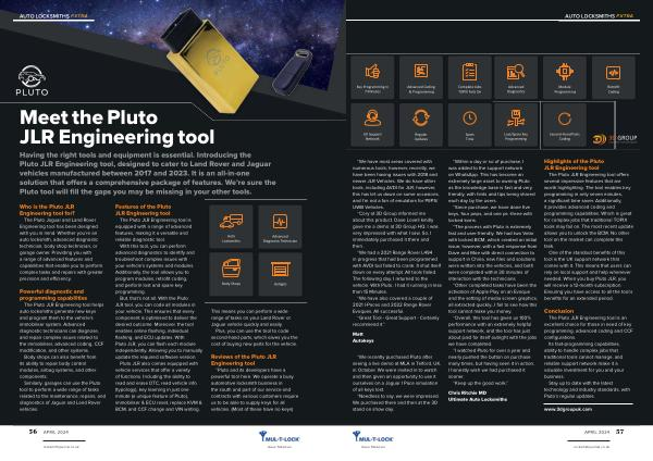 The Pluto Jaguar and Land Rover Engineering tool has been designed with you in mind . Whether you ’ re an auto locksmith , advanced diagnostic technician , body shop technician , or garage owner . Providing you with a range of advanced features and capabilities that enable you to perform complex tasks and repairs with greater precision and efficiency .