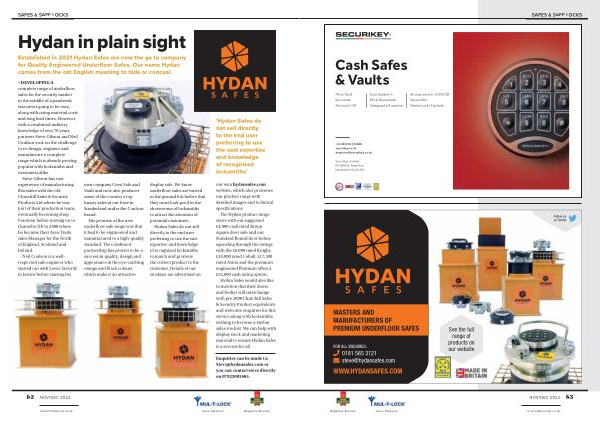 ‘ Hydan Safes do not sell directly to the end user preferring to use the vast expertise and knowledge of recognised locksmiths ’
