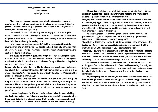 In weeks since, I’ve noticed many sauntering up and down the quiet streets. I wonder if it's just the neighborhood, or maybe they’ve come around for good? It seems the last part could be so. Ever since you’ve gone, black cats have lurked around every forbidding turn.