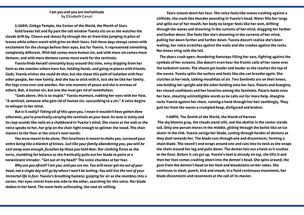 Gold leaves fall and fly past the tall window Yuexia sits on as she watches the clouds drift by. Cheers and shouts fly through the air from kids jumping in piles of leaves while others watch with grins on their faces. Fall these days always comes with excitement for the change before their eyes, but for Yuexia, it represented something completely different. With fall comes more human sin, and with more sin comes more demons, and with more demons comes more work for the sentinels.