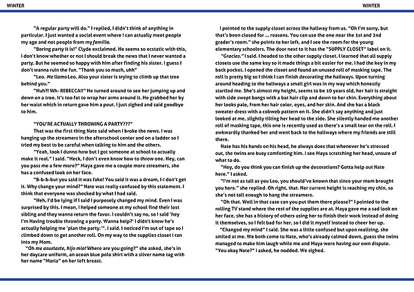 “I’m not as tall as you Leo, you should’ve known that since your mom brought you here.” she replied. Oh right, that. Her current height is reaching my chin, so she’s not tall enough to hang the streamers.