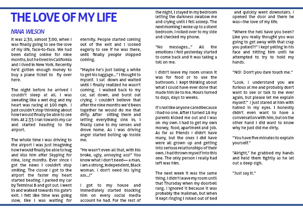 It was 2:30, almost 3:00, when I was finally going to see the love of my life, face-to-face. We had been dating online for nine months, but he lived in California and I lived in New York. Recently he'd gotten enough money to buy a plane ticket to fly over here.